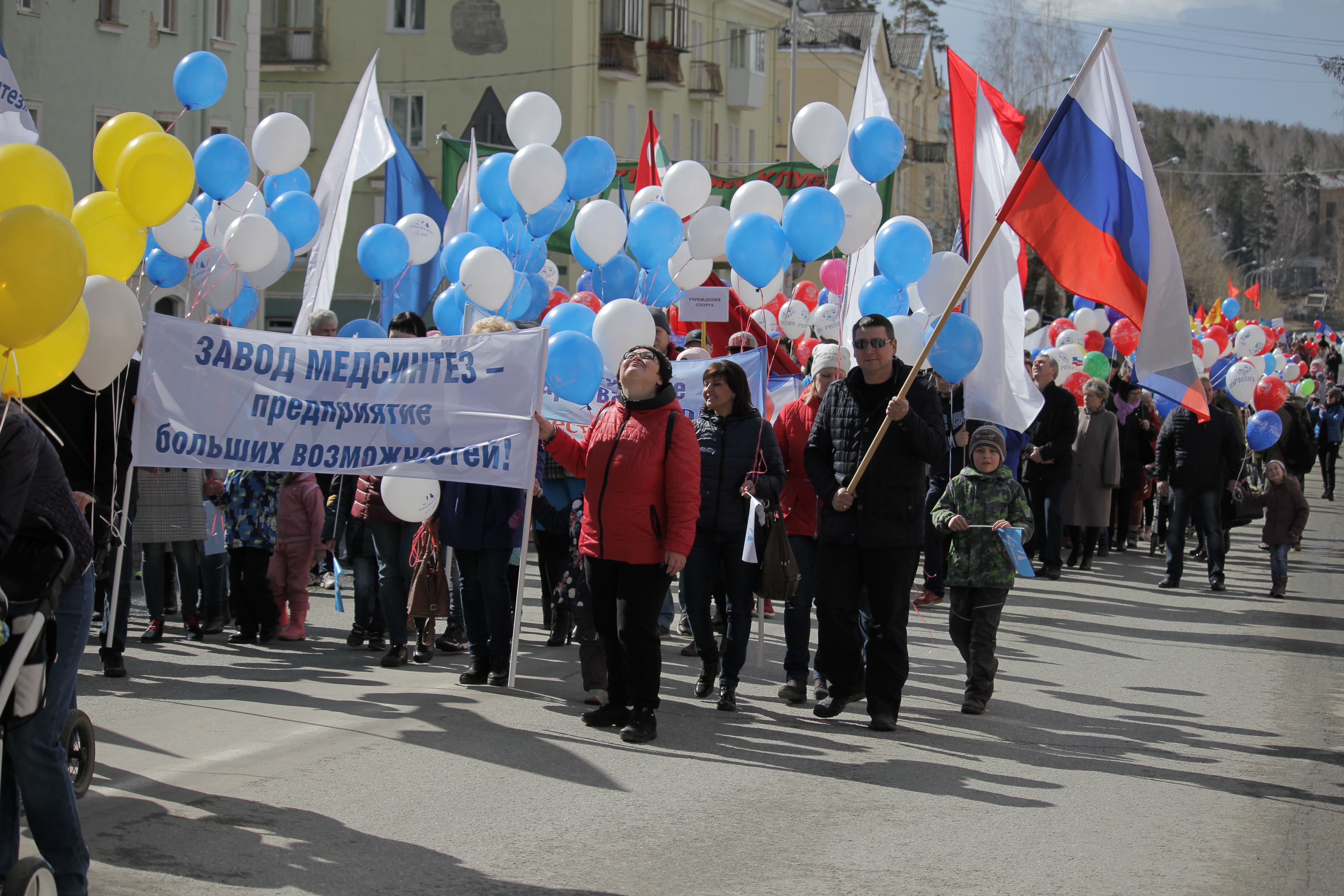 Шествие продолжалось под звуки духового оркестра. В первых колоннах выступили ветераны войны и труда, за ними шли представители различных муниципальных организаций и промышленных предприятий. Колонна завода «Медсинтез» следовала за «Уральским электрохимическим комбинатом». Работников фармацевтической отрасли без труда можно было узнать по ярким транспарантам с лозунгами: Доступные лекарства – народу! Завод «Медсинтез» – предприятие больших возможностей»! С 1 мая! Вместе мы – сила!